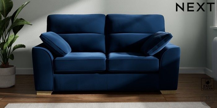 7.2.6 Buy Stamford Highback 2 Seater Sofa Plush Velvet Easy Clean Navy Blue Large Square Angle - Light from the Laura Ashley online shop Click here to use our website with more accessibility support, for example screen readers