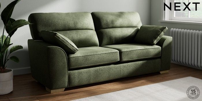7.2.6 Buy Stamford Highback 3 Seater Sofa Boucle Chenille Dark Moss Green Large Square Angle - Light from the Laura Ashley online shop Click here to use our website with more accessibility support, for example screen readers