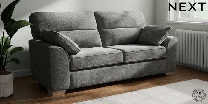 7.2.6 Buy Stamford Highback 3 Seater Sofa Chunky Chenille Dark Grey Large Square Angle - Chrome Metal from the Laura Ashley online shop Click here to use our website with more accessibility support, for example screen readers