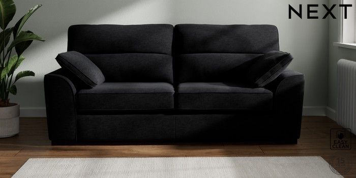 7.2.6 Buy Stamford Highback 3 Seater Sofa Fine Chenille Easy Clean Black Large Square Angle - Dark from the Laura Ashley online shop Click here to use our website with more accessibility support, for example screen readers