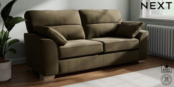 7.2.6 Buy Stamford Highback 3 Seater Sofa Fine Chenille Easy Clean Dark Moss Green Large Square Angle - Chrome Metal from the Laura Ashley online shop Click here to use our website with more accessibility support, for example screen readers