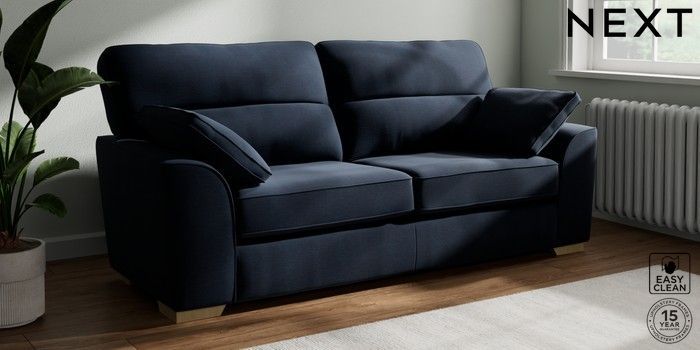 7.2.6 Buy Stamford Highback 3 Seater Sofa Fine Chenille Easy Clean Dark Navy Blue Large Square Angle - Light from the Laura Ashley online shop Click here to use our website with more accessibility support, for example screen readers