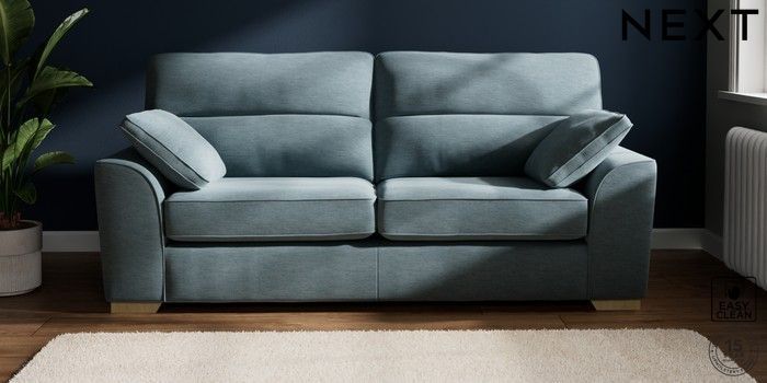 7.2.6 Buy Stamford Highback 3 Seater Sofa Fine Chenille Easy Clean Mid Blue Large Square Angle - Light from the Laura Ashley online shop Click here to use our website with more accessibility support, for example screen readers