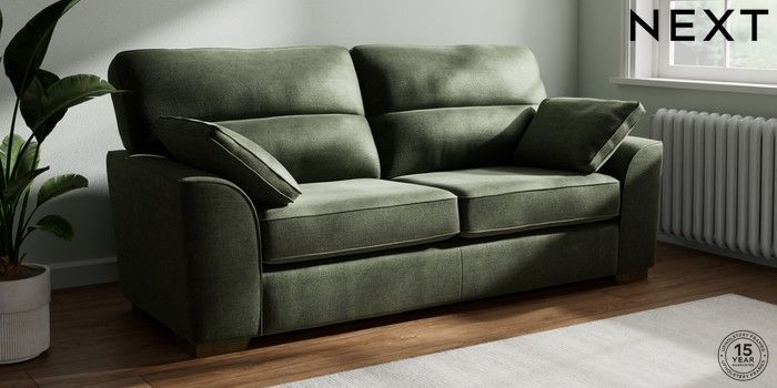 7.2.6 Buy Stamford Highback 3 Seater Sofa Luxe Chenille Mid Green Large Square Angle - Mid from the Laura Ashley online shop Click here to use our website with more accessibility support, for example screen readers