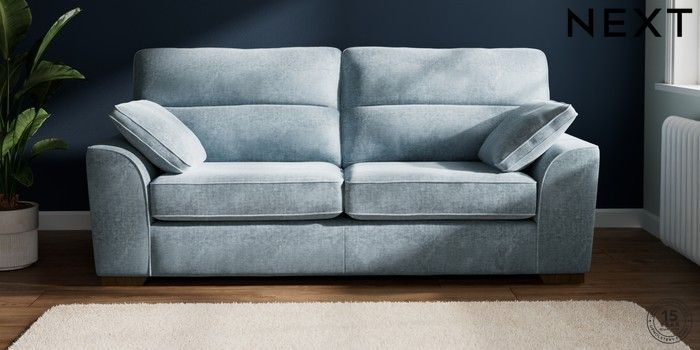 7.2.6 Buy Stamford Highback 3 Seater Sofa Plush Chenille Light Blue Large Square Angle - Mid from the Laura Ashley online shop Click here to use our website with more accessibility support, for example screen readers