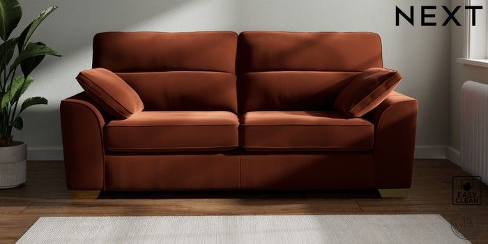 6.12.1 Buy Stamford Highback 3 Seater Sofa Plush Velvet Easy Clean Ginger Orange Large Square Angle - Brushed Brass from the Laura Ashley online shop Click here to use our website with more accessibility support, for example screen readers