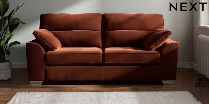7.2.6 Buy Stamford Highback 3 Seater Sofa Plush Velvet Easy Clean Ginger Orange Large Square Angle - Chrome Metal from the Laura Ashley online shop Click here to use our website with more accessibility support, for example screen readers