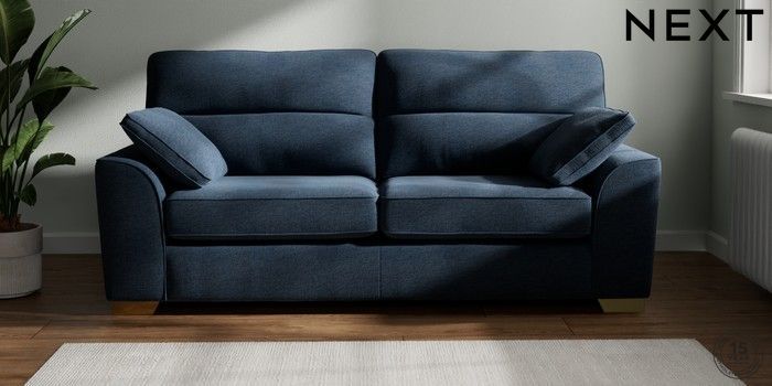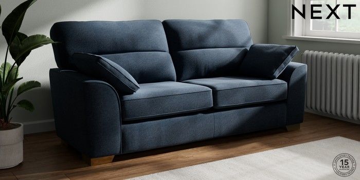 7.2.6 Buy Stamford Highback 3 Seater Sofa Ripple Chenille Dark Blue Large Square Angle - Brushed Brass from the Laura Ashley online shop Click here to use our website with more accessibility support, for example screen readers