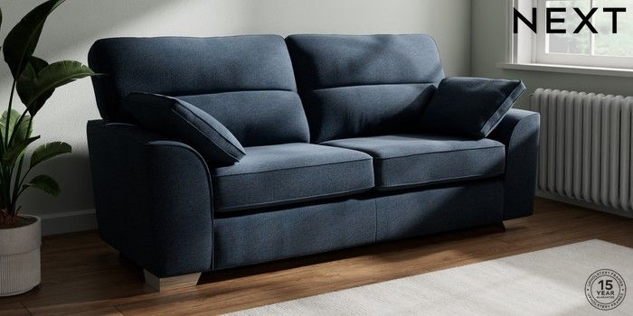 7.2.6 Buy Stamford Highback 3 Seater Sofa Ripple Chenille Dark Blue Large Square Angle - Chrome Metal from the Laura Ashley online shop Click here to use our website with more accessibility support, for example screen readers