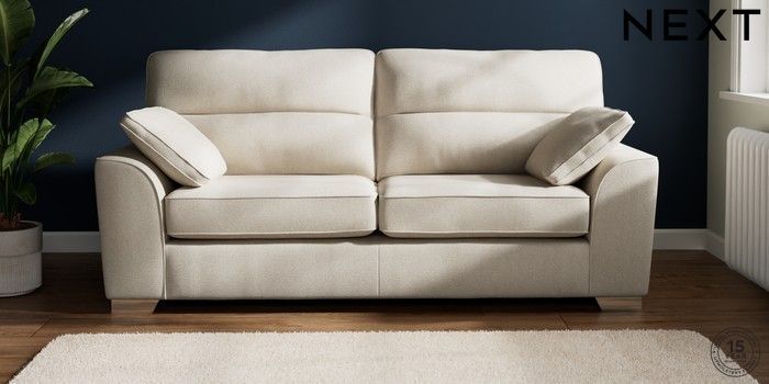 7.2.6 Buy Stamford Highback 3 Seater Sofa Tweedy Chenille Oyster Large Square Angle - Chrome Metal from the Laura Ashley online shop Click here to use our website with more accessibility support, for example screen readers