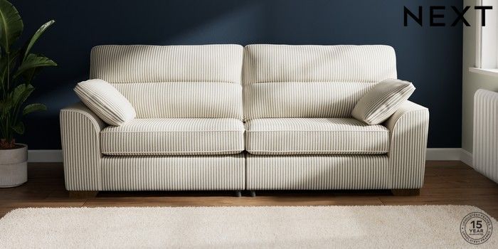 7.3.1 Buy Stamford Highback 4 Seater Sofa Chenille Stripe Moss Green Large Square Angle - Mid from the Laura Ashley online shop Click here to use our website with more accessibility support, for example screen readers