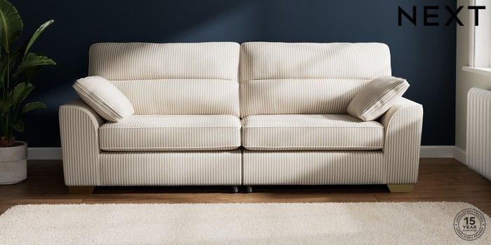7.3.1 Buy Stamford Highback 4 Seater Sofa Chenille Stripe Natural Large Square Angle - Brushed Brass from the Laura Ashley online shop Click here to use our website with more accessibility support, for example screen readers