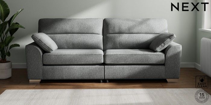6.12.1 Buy Stamford Highback 4 Seater Sofa Chunky Boucle Easy Clean Mid Grey Large Square Angle - Chrome Metal from the Laura Ashley online shop Click here to use our website with more accessibility support, for example screen readers