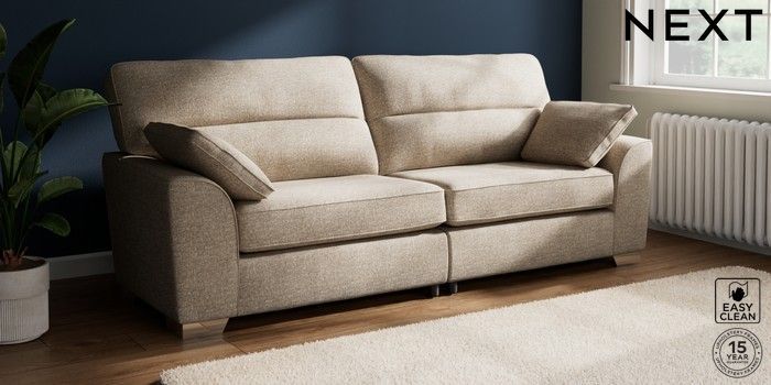 7.2.6 Buy Stamford Highback 4 Seater Sofa Chunky Boucle Easy Clean Mid Natural Large Square Angle - Chrome Metal from the Laura Ashley online shop Click here to use our website with more accessibility support, for example screen readers