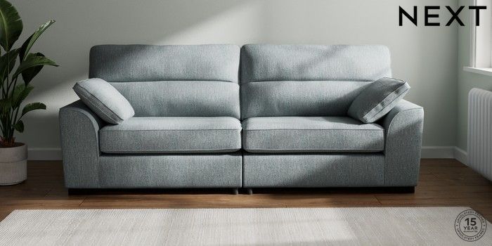6.12.1 Buy Stamford Highback 4 Seater Sofa Chunky Weave Mid Blue Large Square Angle - Dark from the Laura Ashley online shop Click here to use our website with more accessibility support, for example screen readers