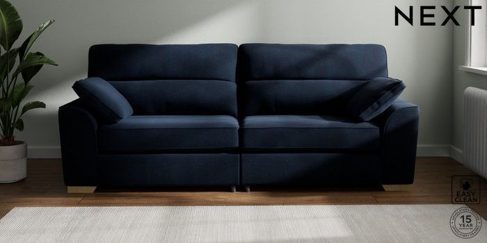 7.2.6 Buy Stamford Highback 4 Seater Sofa Fine Chenille Easy Clean Dark Navy Blue Large Square Angle - Light from the Laura Ashley online shop Click here to use our website with more accessibility support, for example screen readers