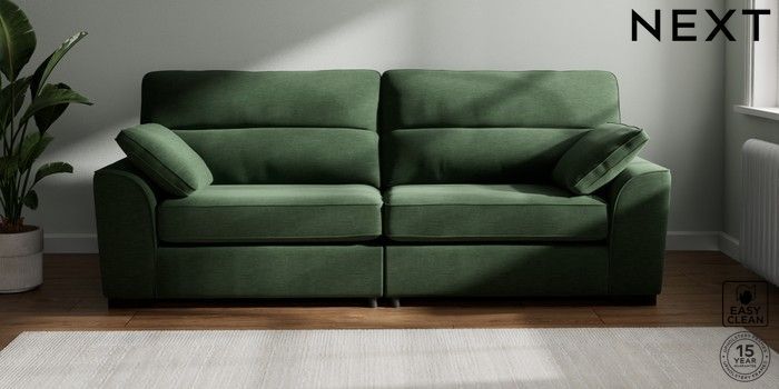 7.2.6 Buy Stamford Highback 4 Seater Sofa Fine Chenille Easy Clean Mid Khaki Green Large Square Angle - Dark from the Laura Ashley online shop Click here to use our website with more accessibility support, for example screen readers
