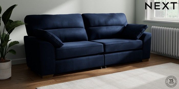 7.2.6 Buy Stamford Highback 4 Seater Sofa Luxe Chenille Navy Blue Large Square Angle - Mid from the Laura Ashley online shop Click here to use our website with more accessibility support, for example screen readers