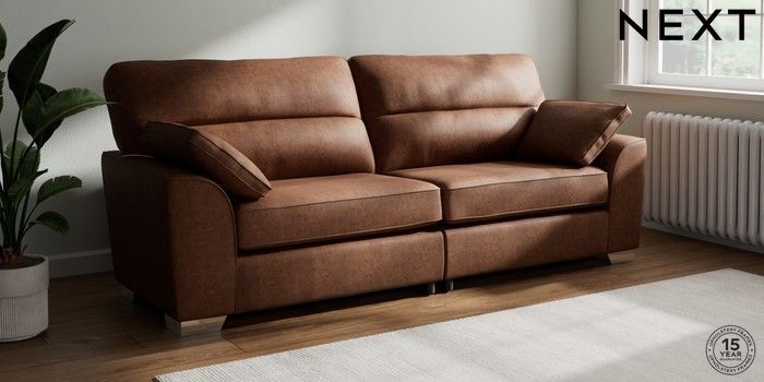7.3.1 Buy Stamford Highback 4 Seater Sofa Monza Faux Leather Easy Clean Chestnut Brown Large Square Angle - Chrome Metal from the Laura Ashley online shop