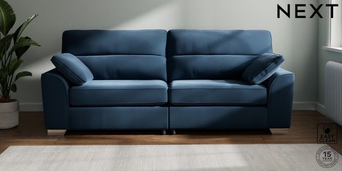 7.2.6 Buy Stamford Highback 4 Seater Sofa Plush Velvet Easy Clean Airforce Blue Large Square Angle - Chrome Metal from the Laura Ashley online shop Click here to use our website with more accessibility support, for example screen readers