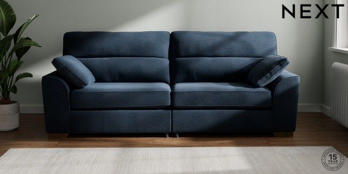 7.2.6 Buy Stamford Highback 4 Seater Sofa Ripple Chenille Dark Blue Large Square Angle - Mid from the Laura Ashley online shop Click here to use our website with more accessibility support, for example screen readers