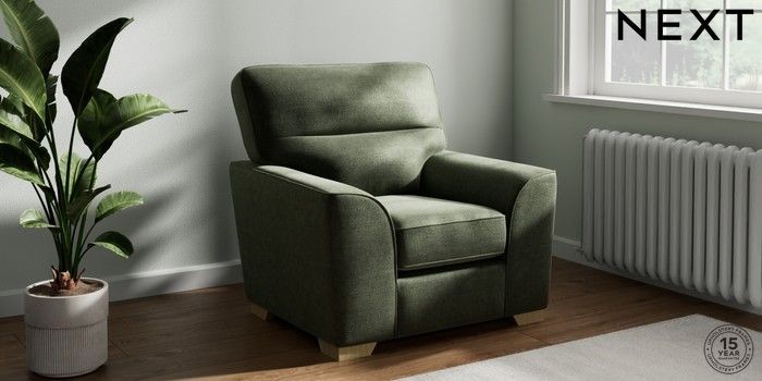 7.2.6 Buy Stamford Highback Armchair Luxe Chenille Mid Green Square Angle - Light from the Laura Ashley online shop Click here to use our website with more accessibility support, for example screen readers