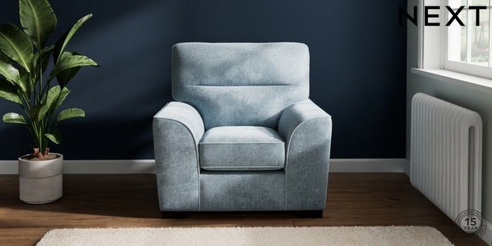 7.2.6 Buy Stamford Highback Armchair Plush Chenille Light Blue Square Angle - Dark from the Laura Ashley online shop Click here to use our website with more accessibility support, for example screen readers