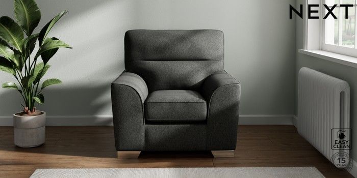 7.2.6 Buy Stamford Highback Armchair Tweedy Blend Easy Clean Charcoal Grey Square Angle - Chrome Metal from the Laura Ashley online shop Click here to use our website with more accessibility support, for example screen readers
