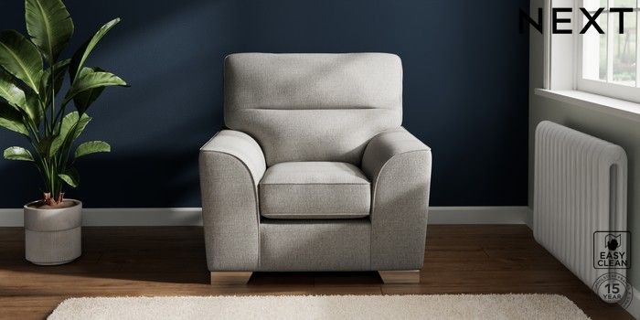 7.2.6 Buy Stamford Highback Armchair Woven Chenille Easy Clean Light Grey Square Angle - Chrome Metal from the Laura Ashley online shop Click here to use our website with more accessibility support, for example screen readers