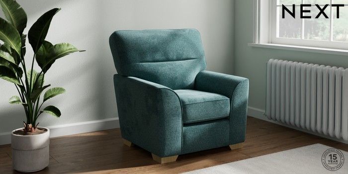 6.12.1 Buy Stamford Highback Small Armchair Chunky Chenille Mid Teal Green Square Angle - Light from the Laura Ashley online shop Click here to use our website with more accessibility support, for example screen readers