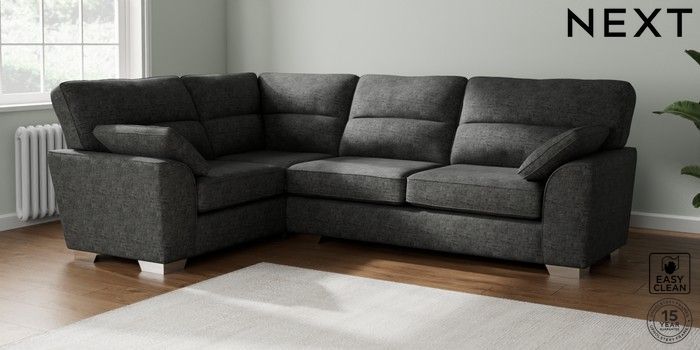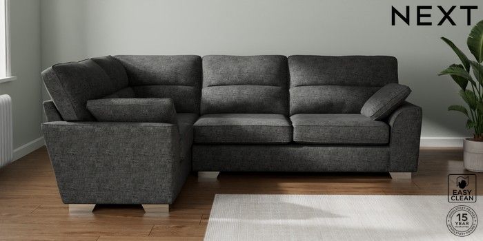 7.2.6 Buy Stamford Highback Large Corner Sofa - Left Hand Boucle Weave Easy Clean Charcoal Grey Large Square Angle - Chrome Metal from the Laura Ashley online shop Click here to use our website with more accessibility support, for example screen readers