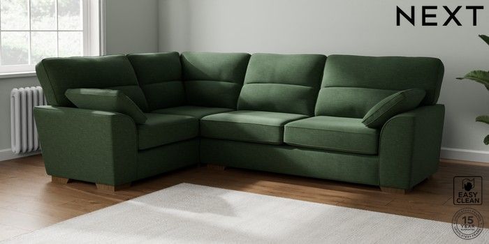 7.2.6 Buy Stamford Highback Large Corner Sofa - Left Hand Fine Chenille Easy Clean Mid Khaki Green Large Square Angle - Mid from the Laura Ashley online shop Click here to use our website with more accessibility support, for example screen readers