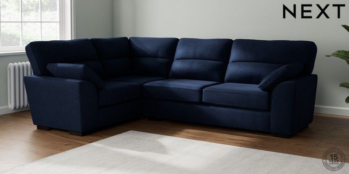 7.2.6 Buy Stamford Highback Large Corner Sofa - Left Hand Luxe Chenille Navy Blue Large Square Angle - Dark from the Laura Ashley online shop Click here to use our website with more accessibility support, for example screen readers