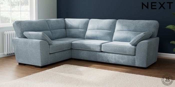 7.2.6 Buy Stamford Highback Large Corner Sofa - Left Hand Plush Chenille Light Blue Large Square Angle - Dark from the Laura Ashley online shop Click here to use our website with more accessibility support, for example screen readers