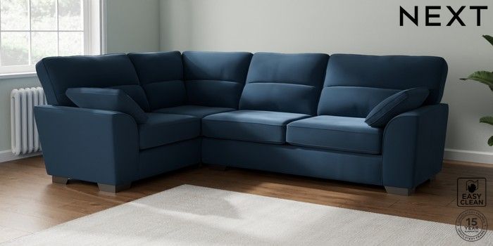 7.2.6 Buy Stamford Highback Large Corner Sofa - Left Hand Plush Velvet Easy Clean Airforce Blue Large Square Angle - Gunmetal from the Laura Ashley online shop Click here to use our website with more accessibility support, for example screen readers