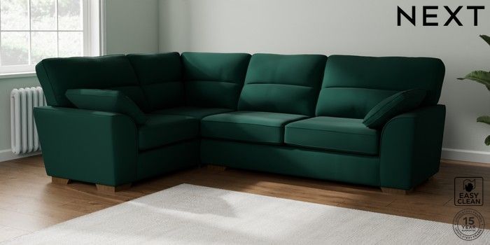 7.2.10 Buy Stamford Highback Large Corner Sofa - Left Hand Plush Velvet Easy Clean Bottle Green Large Square Angle - Mid from the Laura Ashley online shop Click here to use our website with more accessibility support, for example screen readers