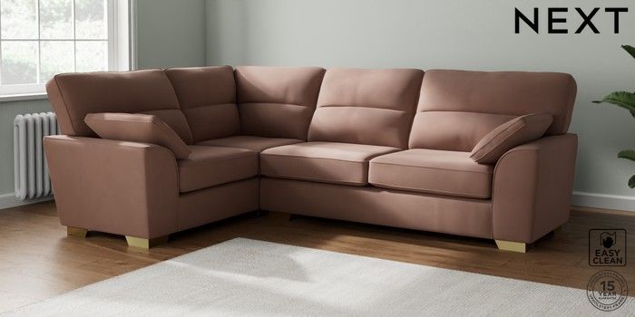 7.2.6 Buy Stamford Highback Large Corner Sofa - Left Hand Plush Velvet Easy Clean Mid Natural Large Square Angle - Brushed Brass from the Laura Ashley online shop Click here to use our website with more accessibility support, for example screen readers