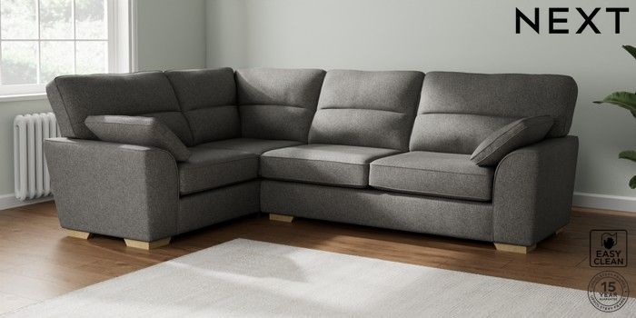 7.2.10 Buy Stamford Highback Large Corner Sofa - Left Hand Tweedy Blend Easy Clean Dark Grey Large Square Angle - Light from the Laura Ashley online shop Click here to use our website with more accessibility support, for example screen readers