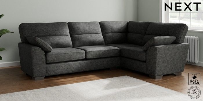 7.2.6 Buy Stamford Highback Large Corner Sofa - Right Hand Boucle Weave Easy Clean Charcoal Grey Large Square Angle - Gunmetal from the Laura Ashley online shop Click here to use our website with more accessibility support, for example screen readers