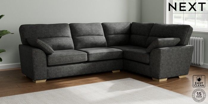 7.2.6 Buy Stamford Highback Large Corner Sofa - Right Hand Boucle Weave Easy Clean Charcoal Grey Large Square Angle - Light from the Laura Ashley online shop Click here to use our website with more accessibility support, for example screen readers