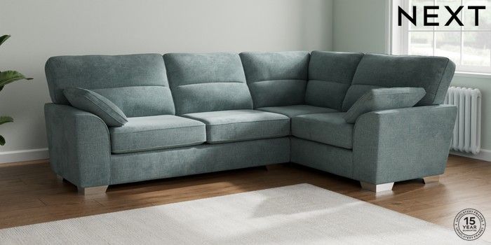 7.2.6 Buy Stamford Highback Large Corner Sofa - Right Hand Chunky Chenille Light Teal Green Large Square Angle - Chrome Metal from the Laura Ashley online shop Click here to use our website with more accessibility support, for example screen readers