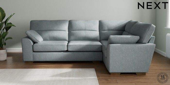 7.2.10 Buy Stamford Highback Large Corner Sofa - Right Hand Chunky Weave Mid Blue Large Square Angle - Mid from the Laura Ashley online shop Click here to use our website with more accessibility support, for example screen readers