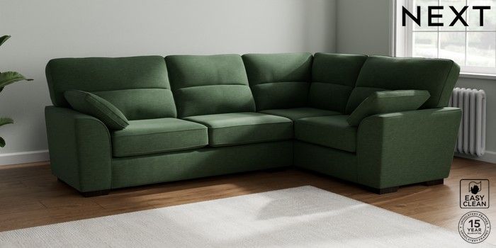 7.2.6 Buy Stamford Highback Large Corner Sofa - Right Hand Fine Chenille Easy Clean Mid Khaki Green Large Square Angle - Dark from the Laura Ashley online shop Click here to use our website with more accessibility support, for example screen readers