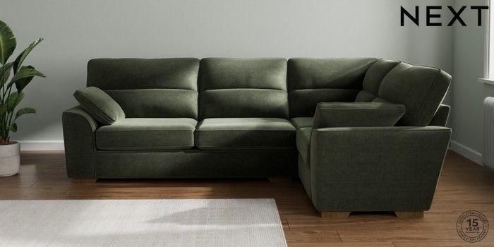 7.2.6 Buy Stamford Highback Large Corner Sofa - Right Hand Luxe Chenille Mid Green Large Square Angle - Mid from the Laura Ashley online shop Click here to use our website with more accessibility support, for example screen readers