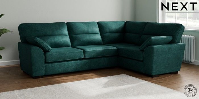 7.2.6 Buy Stamford Highback Large Corner Sofa - Right Hand Plush Chenille Dark Teal Green Large Square Angle - Dark from the Laura Ashley online shop Click here to use our website with more accessibility support, for example screen readers
