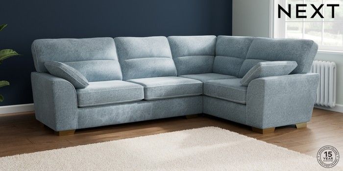 7.2.6 Buy Stamford Highback Large Corner Sofa - Right Hand Plush Chenille Light Blue Large Square Angle - Brushed Brass from the Laura Ashley online shop Click here to use our website with more accessibility support, for example screen readers
