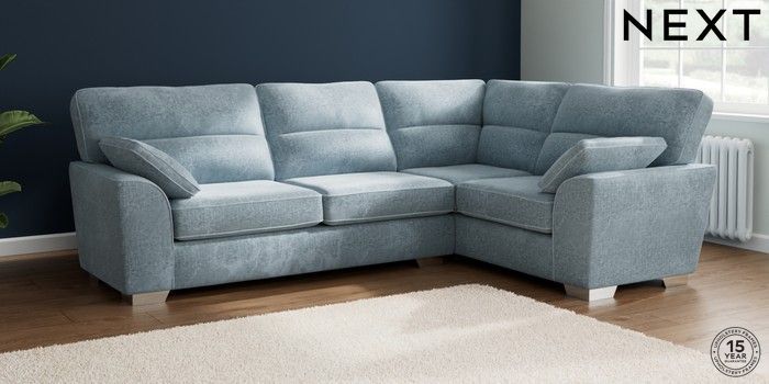 7.2.6 Buy Stamford Highback Large Corner Sofa - Right Hand Plush Chenille Light Blue Large Square Angle - Chrome Metal from the Laura Ashley online shop Click here to use our website with more accessibility support, for example screen readers