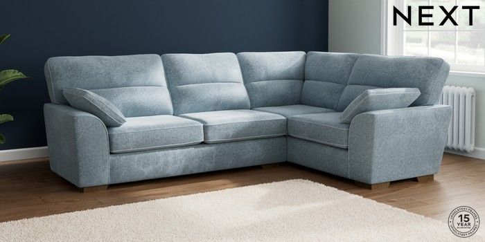7.2.6 Buy Stamford Highback Large Corner Sofa - Right Hand Plush Chenille Light Blue Large Square Angle - Mid from the Laura Ashley online shop Click here to use our website with more accessibility support, for example screen readers