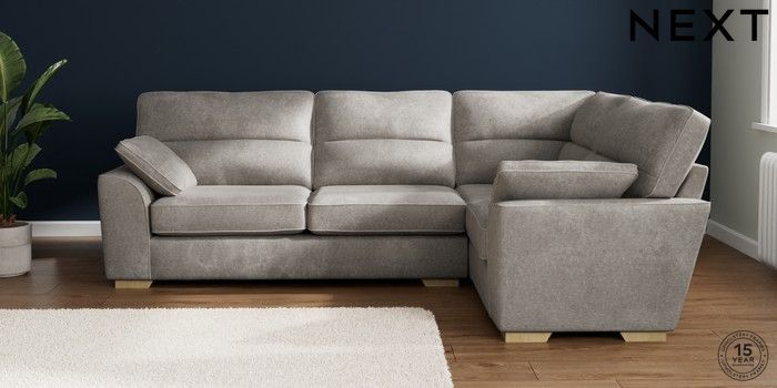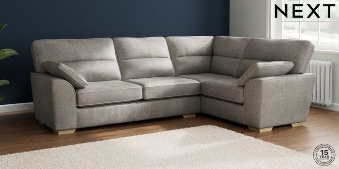 7.2.10 Buy Stamford Highback Large Corner Sofa - Right Hand Plush Chenille Light Grey Large Square Angle - Light from the Laura Ashley online shop Click here to use our website with more accessibility support, for example screen readers