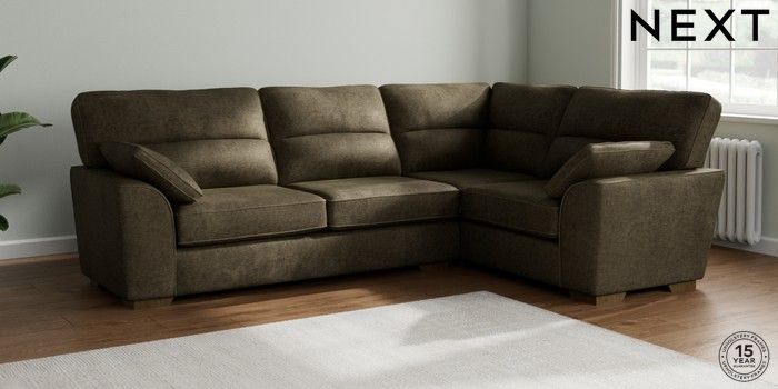 7.2.6 Buy Stamford Highback Large Corner Sofa - Right Hand Plush Chenille Moss Green Large Square Angle - Mid from the Laura Ashley online shop Click here to use our website with more accessibility support, for example screen readers